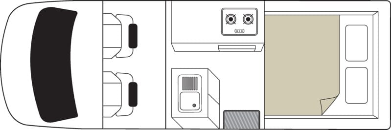 Lerne den Mighty HiLITE kennen – deinen perfekten Campervan für große Abenteuer mit kleinem Budget! Dieser kompakte Allrounder bietet 2 Erwachsenen einen gemütlichen Schlafplatz in einem Doppelbett, das sich aus dem Essbereich umbauen lässt. So hast du tagsüber Platz zum Entspannen und Essen – und nachts einen bequemen Ort zum Schlafen.